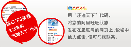 说明:这些代码的作用是显示您的在线状态的图标,并允许阿里旺旺用户向您发起临时会话