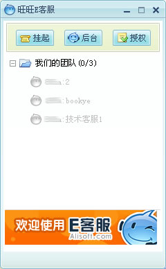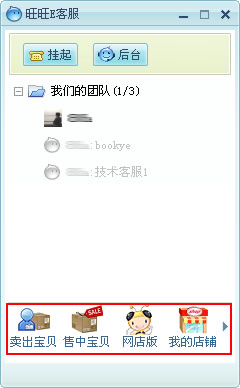 主帐号或子帐号登录旺旺2008后,点击旺旺主界面上面的按钮,将会打开E客服面板,里面有【我们的团队】组,见下图。